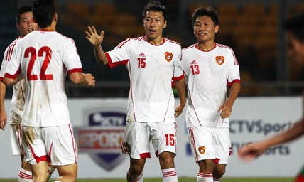 中国队出场阵容:1-曾诚;3-孙祥、5-杜威、10-郑智、15-吴曦;13-刘建业(46分钟,6-冯潇霆)、19-杨昊;21-张稀哲(54分钟,16-姜宁)、8-王永珀(75分钟,18-郜林)、20-武磊;22-于大宝