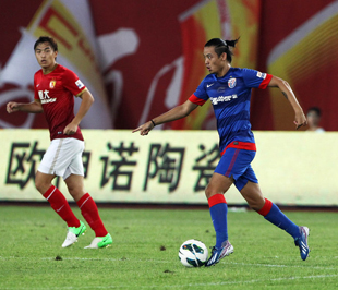 下半场易边再战,一上来里皮用赵旭日替换上半场有受伤情况的冯潇霆,郑智退后一位打中后卫。第49分钟,广州恒大在左路耐心配合,埃尔克森左路传出一记落点极佳弧线球,郜林跟进力压后卫头球攻门得手,场上比分改写为1比0。第51分钟,埃尔克森前场控制球,戴琳背后有犯规动作主裁判出示了一张黄牌。第54分钟,郜林在禁区内想绕开柏佳俊解围,两人相撞后双双倒地,主裁判判罚了点球。莫雷诺主罚点球推射破门,场上比分改写为1比1。第58分钟,郜林在禁区前沿得球转身起脚劲射,王大雷做出精彩扑救将球托出底线。第60分钟,埃尔克森禁区前沿将球转移到右路空挡,郜林得球假射真扣摆脱防守小角度劲射,球打在立柱上弹出。[点击观看视频]广州恒大错失反超比分良机。
