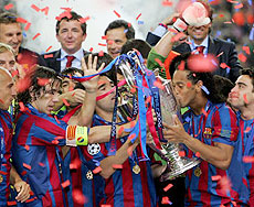 北京时间5月18日2时45分(法国当地时间17日20时45分),在巴黎法兰西大球场开始的第51届欧洲冠军杯决赛中,巴塞罗那2比1逆转击败阿森纳,第2次夺得冠军杯。开场不到20分钟,小罗纳尔多妙传制造杀机,莱曼冲出禁区扑倒埃托奥,成为首位在冠军杯决赛中被罚下的球员。但此后亨利落点精准的任意球助攻坎贝尔得分。上半时结束前,埃托奥接小罗直传射中门柱。下半时,巴萨替补拉尔森两次助攻,埃托奥将比分追平,终结了阿森纳冠军杯连续1005分钟不失球的纪录,另一位替补贝莱蒂随即完成逆转。
