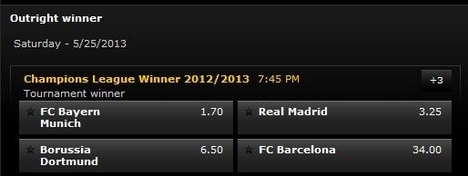 拜仁主场出色的表现不仅换回一场胜利,而且也从第三一跃成为头号夺冠热门。赛前拜仁的夺冠赔率为1赔3.4(Bwin)和1赔3.75(威廉希尔),赛后两家博彩公司的最新赔率为1赔1.7(Bwin)和1赔1.8(威廉希尔),这是本赛季欧冠迄今开出的最低赔率。皇马和多特由于比赛开未开打,赔率几乎没有变化。