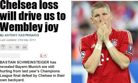 在欧洲主要联赛都陆续偃旗息鼓准备下赛季比赛的时候,四年第三次杀进欧冠决赛的拜仁慕尼黑一定是最紧张的球队。前两次进决赛,拜仁分别0-2输给国际米兰、点球大战4-5输给切尔西,含恨获得亚军。如今,德甲巨人又一次站在欧冠决赛的场地,这一次会是怎样的结果备受关注,而在他们中场大将施魏因斯泰格看来,去年输给切尔西的经历,将带领他们品尝温布利的喜悦。