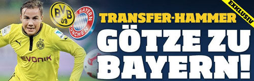 虽然格策与多特蒙德的合同要到2016年才到期,但是今年夏天这位20岁德国新星很可能就离开“大黄蜂”,加盟德甲巨头拜仁慕尼黑。《图片报》23日的头条报道,格策今夏将会转投拜仁,转会费达到3700万欧元。