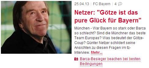 《慕尼黑日报》:内策尔称格策是最佳转会