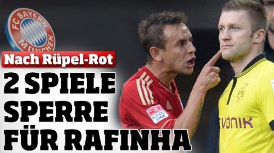 上周末的德甲联赛,多特蒙德主场和拜仁的较量充满了火药味。比赛中除了两队的进球功臣格罗斯克罗伊茨和戈麦斯外,最为抢眼的估计就是拜仁右后卫拉菲尼亚了。曾经的沙尔克球员,代表拜仁面对多特蒙德的时候依然生猛。一开场拉菲尼亚就和施梅尔策爆发了口角,下半场更是因为肘击布拉什奇科夫斯基吃到第二张黄牌下场。近日,德国足协体育法庭宣布了对于拉菲尼亚的追加处罚,拜仁后卫停赛2场,并处以罚金1万5千欧元。