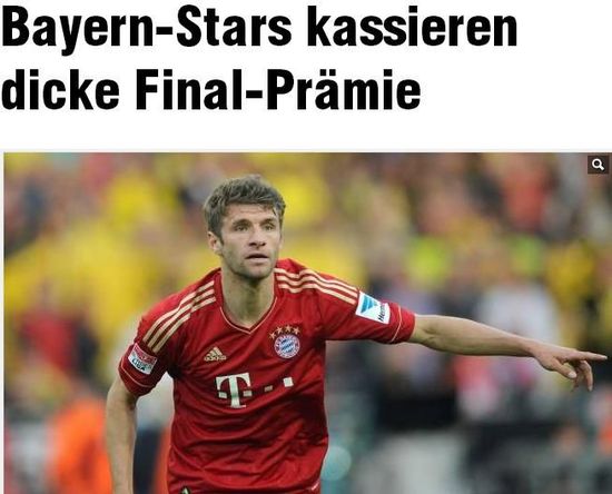 拜仁本赛季的表现出色的令人感到可怕,球队也曾经多次分发奖金以激励球员们保持这样的好状态。在赛季前的德国超级杯2-1击败多特蒙德,以及在德国杯第二轮4-0击败凯泽斯劳滕晋级后,拜仁都给球队的每一名球员分发了1万欧元的奖金,以资鼓励。而在球队成功从欧冠小组赛阶段突围后,每一名球员都获得了4万欧元的奖金。从这一部分可以看出,拜仁的成绩要求。超级杯并不算是正式的比赛,而德国杯第二轮和欧冠小组赛的顺利突围,只能算是及格而已。
