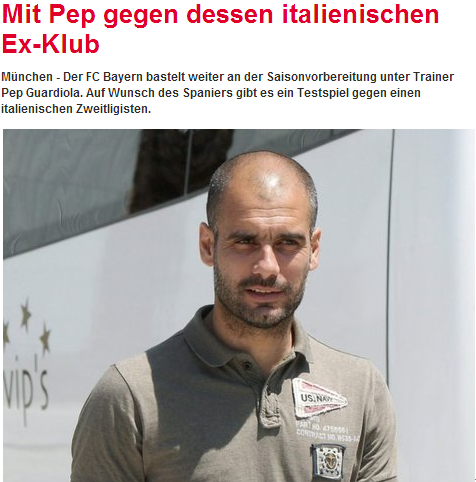 《慕尼黑日报》:拜仁意大利集训对阵瓜帅老东家