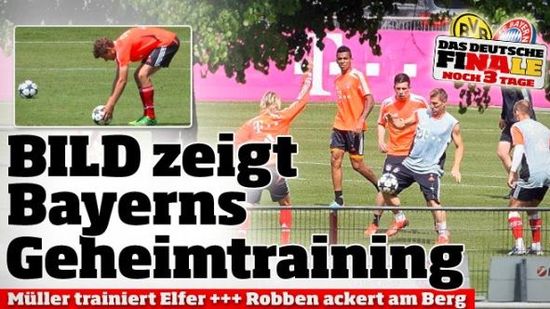 去年的欧冠决赛,标志着拜仁一个赛季的失败,而球队最终正是倒在了德国人本应最擅长的环节:点球大战。这次面对同样来自德国的顽强球队多特蒙德,拜仁显然是不打算在点球大战里再次犯错了。在周二的训练中,拜仁球员穆勒特意进行了30分钟的点球加练,陪他训练的是拜仁第三门将、小将雷德。30分钟的时间里穆勒大概完成了60次射门,雷德一度精疲力尽。上个赛季的欧冠决赛穆勒被提前换下因此错过了点球大战,显然这次他要承担起责任。