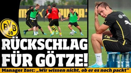 格策回来了!格策终于在本周回到了多特蒙德的训练场上,在多特蒙德上午的训练中,格策以独自的训练为主。在经过了34分钟的训练后格策自信的表示,“现在我没有什么问题了。”格策说到。但在下午一切风云突变,格策参加了球队的合练,似乎情况不错。但是在进行6对3的分组对抗训练时,格策突然捂住了自己的左大腿,似乎伤情出现了反复。而在经过简单的处理后,格策离开了球队的训练场。此时距离多特蒙德结束训练只差10分钟。
