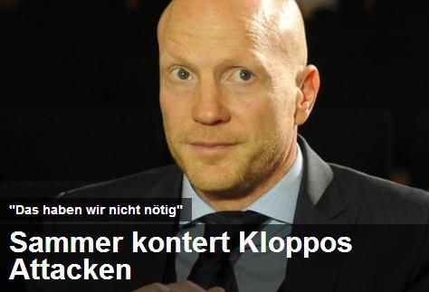 对于克洛普的言论,拜仁体育主管萨默尔显得非常不屑,他表示,“在他想象中他是个特别出众的人,但是我们一直说谦虚也是非常重要的。总而言之这件事情很简单,德国人是有言论自由的,当克洛普觉得他应该给这个世界传达一些什么信息的时候,那么他就回答就行了。不过我们觉得没必要去认真处理这件事情,真的没必要。”萨默尔和克洛普本赛季早已结下了梁子,在联赛下半程拜仁和多特蒙德的比赛中,二人就直接面对面顶牛,最终双方都没有道歉。