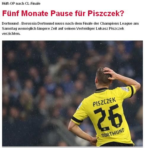 本周多特蒙德正式宣布,队内核心球员格策因伤无缘本周末的欧冠决赛。而随后又传来了一个坏消息,那就是多特蒙德的主力右边后卫皮什切克也将因伤接受手术治疗,不过幸运的是,皮什切克会坚持踢完对拜仁欧冠决赛再进行手术,多特蒙德因此才避免了在欧冠决赛中连失主力的不利局面。