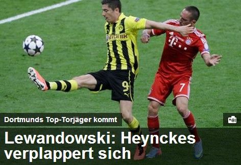 在拜仁和多特蒙德的欧冠决赛中,本赛季表现出色的多特蒙德锋霸莱万多夫斯基彻底哑火,被拜仁后防线收的毫无脾气。难以获得进球的莱万,在比赛中还怒踩拜仁后卫博阿滕,似乎表明自己不会加盟死敌球队。但在赛后的新闻发布会上,拜仁主帅海因克斯透露,在格策之后,莱万多夫斯基也将加盟拜仁,而且相信波兰锋霸的转会很快就可以完成。联系到比赛中莱万没有主罚多特蒙德点球的事实,以及拜仁邀请其经纪人参加欧冠后晚宴的消息,海帅的爆料可信度非常高。