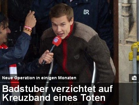 就在上个月,巴德施图贝尔飞赴美国科罗拉多接受了又一次的膝盖手术,由斯特德曼博士主刀去除了撕裂和破损的韧带部分。按照斯特德曼医生的原计划,巴德第二次撕裂的十字韧带手术后会使用(死者)捐献的韧带修复,但术后巴德拒绝使用捐献的韧带,坚持只用自己的骨头和肌腱组织。巴德对此解释道,“可能这比一般恢复要再多三到四个月,但我坚持只用我自己的骨肉和组织。”
