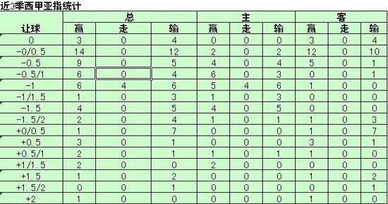 巴伦西亚在过往3个赛季共遭遇15种不同亚盘,结果取得赢55走4输55的成绩,其中主场赢26走4输25、客场赢29输30,赢输分布较为平均。具体而言,巴伦西亚在受让0/0.5的情况下表现最糟糕,3个赛季8战下来竟只有赢1输7的成绩,而且全部发生在客场。