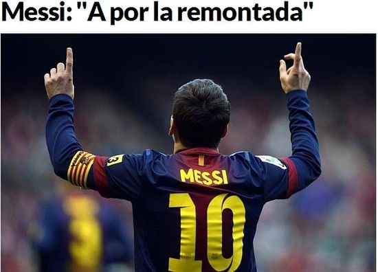 虽然0-4不敌拜仁的比分让绝大多数球迷都认为巴萨被淘汰基本成定局,但梅西却不会认输,小跳蚤表示要努力争取翻盘。在上周末对阵毕巴的比赛里,梅西替补出场,如疯如魔,登场只有10分钟便贡献一粒进球和一个助攻,帮助沉闷无比的巴萨在圣马梅斯建立领先优势,只是可惜毕巴最后时刻扳平比分,巴萨在欧冠和联赛连续两场无法取胜。