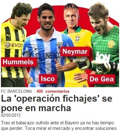 在锋线上,巴萨球迷最想要得到内马尔,他的支持率为45%,领先于莱万多夫斯基(28%)。巴西媒体甚至认为,在巴萨欧冠耻辱出局之后,将会加速内马尔转投诺坎普的进程。在中场,巴萨球迷最想要引进伊斯科,他的支持率达到了43%,贝尔和京多安分别以23%和21%的支持率排名二三位。在中卫位置上,胡梅尔斯获得了59%的选票,蒂亚戈-席尔瓦支持率为34%。在门将位置上,德赫亚以74%的支持率独领风骚,排名第二的雷纳只得到了18%的支持率。