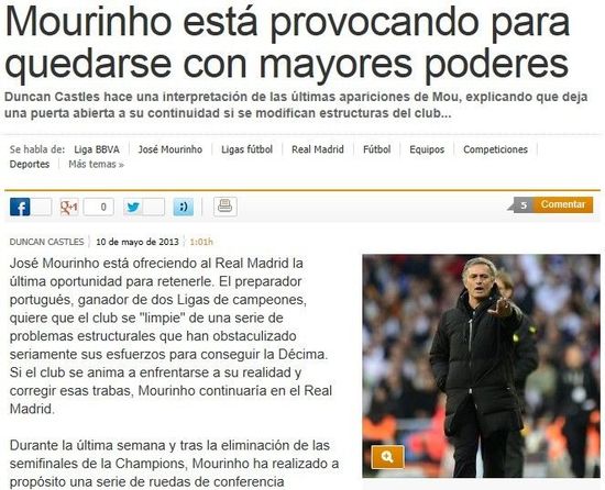 穆里尼奥如今提供给皇马的是留下他的最后机会,他开出的条件是俱乐部必须给予他更大的权力,也就是彻底放权,球队所有事宜必须由他一个人说了算,哪怕弗洛伦蒂诺也不能干涉。这不是穆里尼奥头一回提出这个要求,但放在当下这个时间段里他竟然仍旧如此坚持,这足以表明,穆里尼奥拒绝向任何人做出妥协,他坚定不移地认为,自己手握大权才有助于球队取得更大成功。