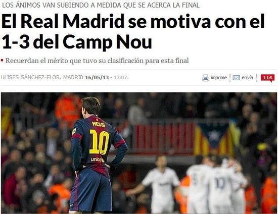 此番皇马能够进入国王杯决赛殊为不易,半决赛皇马对阵的是巴萨,两队首回合曾在伯纳乌球场1-1战平,当时西班牙媒体普遍认为,皇马次回合作客诺坎普没有什么希望完成晋级,但后来皇马却用客场3-1击败巴萨的赛果证明,一切皆有可能。
