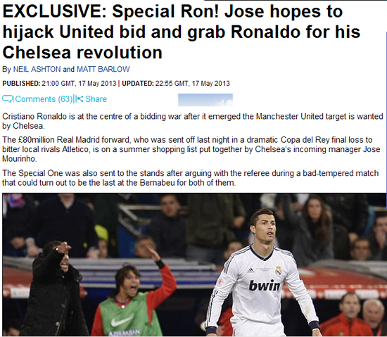 《每日邮报》:穆帅要带C罗去切尔西