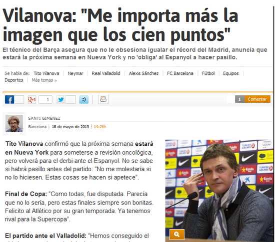比拉诺瓦首先证实,下周他将再次前往纽约接受肿瘤复查,会在下轮巴萨客场挑战西班牙人的同城德比战开始前回到巴塞罗那。记者随即请巴萨主帅谈谈对国王杯决赛的看法,比拉诺瓦回答道:“我要祝贺马竞,他们完成了一个伟大的赛季。接下来我们期待西超杯。”