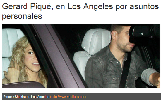 《世界体育报》在报道中指出,皮克因私人原因向俱乐部请了三天假,这三天他将飞赴洛杉矶与参加节目录制的夏奇拉在一起,同时还为了与自己刚出生不久的儿子米兰团聚,巴萨俱乐部意外地批准了皮克的请求,巴萨后卫将缺席3天的训练,当地时间周五的晚上他才能够回到巴塞罗那城,而届时距离同城德比战仅剩48小时了。