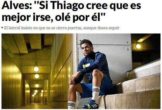 《马卡报》:阿尔维斯支持蒂亚戈转会