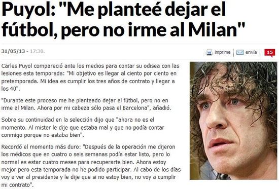 过去两天,巴萨重要球员连续出席新闻发布会,先是宣布阿比达尔离队,后是巴尔德斯宣布踢到2014年离队。以至于当西班牙媒体和巴萨官网在一天前给出普约尔发布会预告时,引发很多猜想。