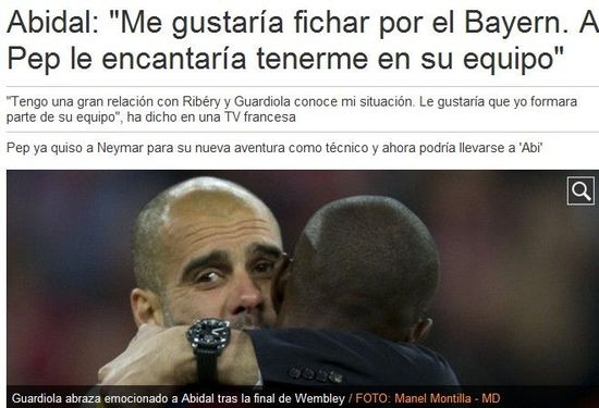 阿比达尔和巴萨的合同,将在本月底到期,巴萨已经决定不与他续约。现在,阿比达尔要为自己寻找新东家了。据《世界体育报》透露,阿比达尔已经明确表示,他愿意追随瓜迪奥拉加盟拜仁慕尼黑。