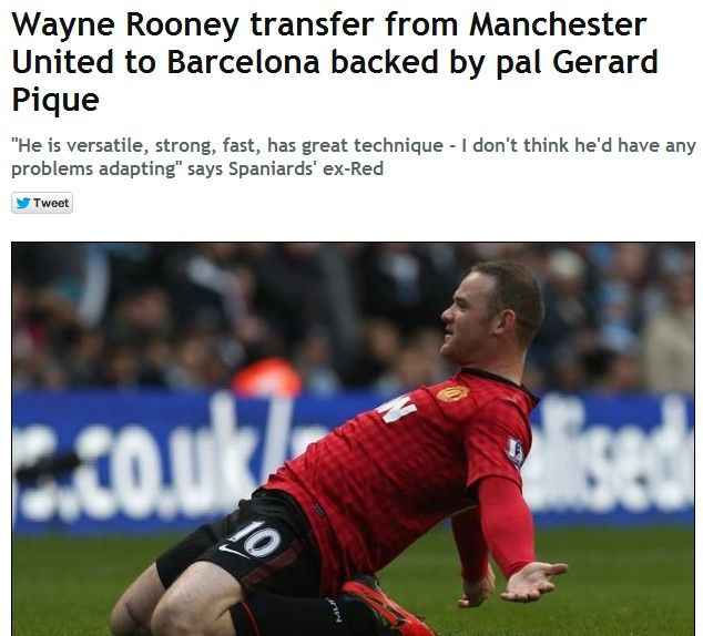 2008年回到巴萨之前,皮克与鲁尼做过3年的队友,他呼吁前队友来诺坎普重聚,“我知道鲁尼有能力成为世界上最好的三名球员,他会完美适合巴塞罗那。他可以踢很多位置,他踢中锋是最棒的,但我们也看到过他踢左右两个边路。他非常全能,他身体强壮、速度快,而且有着很好的技术。我认为他来巴萨不会有任何适应方面的问题。”