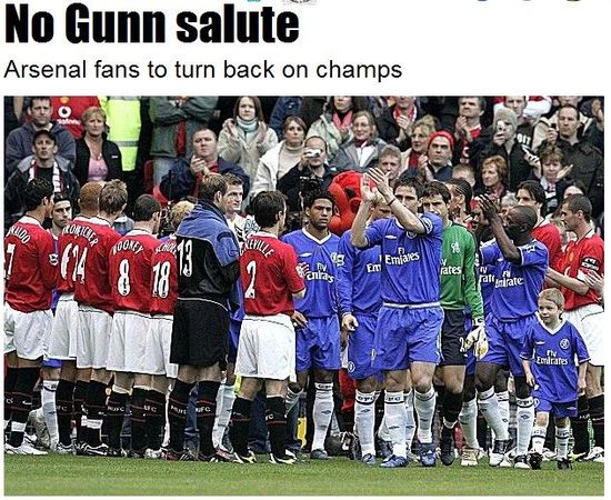 曼联已经提前4轮夺得了2012/13赛季的英超冠军,按照惯例,在下轮曼联做客酋长球场时,阿森纳球员要在球场出口处夹道欢迎曼联球员出场,对此,不少仍耿耿于怀范佩西去年离开阿森纳转投曼联的枪迷届时打算一个特殊的办法抗议昔日枪王的背叛——背向球场!
