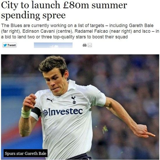 在曼联重夺英超冠军后,曼联CEO吉尔就预测,不甘心失败的曼城肯定会在今夏挥洒支票买巨星提高球队实力。果然,周四的《曼彻斯特晚报》披露,曼城已经为曼奇尼准备了8000万镑转会资金,目标乃4大转会热门贝尔、卡瓦尼、法尔考和伊斯科。