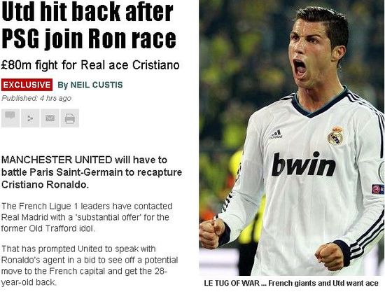 自从2009年加盟皇马后,C罗就用出色的表现征服了全队并逐渐成为银河舰队的头号球星,而他也被视为当今足坛唯一可以和梅西相抗衡的球员。不过相比巴萨,皇马所取得的奖杯要少很多,尤其是在欧冠赛场上皇马一直难以取得突破。此前西班牙媒体就曾报道,C罗已经不愿再继续留在皇马,而《太阳报》则披露,曼联和巴黎圣日尔曼都希望能在今年夏天引进他。
