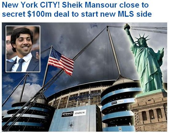自从中东富豪谢赫-曼苏尔买下曼城俱乐部之后,曼城就逐渐成为了英超联赛中一支劲旅,并且在上赛季成功夺得英超冠军。而曼苏尔对足球的热情非常高,除了投资曼城之外,他还准备进军美国足坛。《每日邮报》称,曼苏尔已经花费1亿美元买下了美职联一支新球队的专营权。