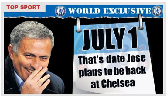 《太阳报》称,何塞-穆里尼奥已经与切尔西达成了协议,将回归蓝军执教。不过官方宣布将等到7月1日或之后,而在此之前,切尔西和穆里尼奥方面都会对媒体保持回避态度。