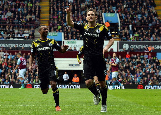 奇迹在第88分钟发生,兰帕德亲自策动进攻,他将球直传给阿扎尔之后快速前插,接着阿扎尔-阿科尔两人连续打出直传配合,阿扎尔左路横传门前,兰帕德近距离将球扫进大门,2-1逆转!兰帕德打破队史进球纪录!神灯疯狂的跑到角旗区庆祝,队友们一拥而上,看台上情绪激动的切尔西球迷甚至冲下来拥抱神灯……维拉公园球场的一角开始骚动,但这不是暴力,而是集体的狂欢。203球,终于等到这天,切尔西人能不疯狂吗?