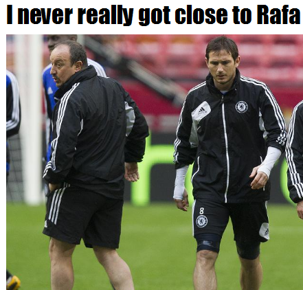 在接受《太阳报》独家专访时,兰帕德表示:“有一些教练会让你很愿意与之建立朋友关系,但贝尼特斯不是。他不属于那种可以陪你坐下来聊天谈话的主帅。有关我的续约问题,我和俱乐部方面协商了好几次,但老实说,贝尼特斯并没有真正地参与进来。他不像有些教练在开会时喜欢到处走动并时不时举起双臂,但我并不是说他不对。只是我认为,多数教练比较像卡佩罗,而贝尼特斯相较下有些另类。”