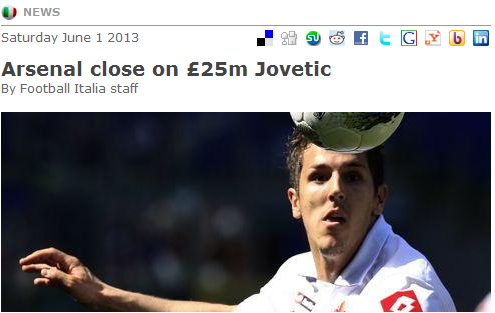 尽管约维蒂奇本人表示倾向于继续留在意大利,但是就目前情况而言,黑山国脚转会国外似乎更加有可能。阿森纳一直长期追逐这名23岁的天才球员,他们计划用2500万英镑敲定这笔交易,而另有传闻曼城以及切尔西同样有意这名球员。