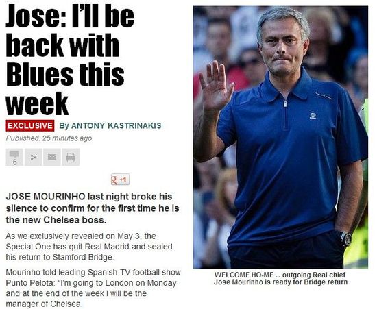 6月3日本周一,英国各大报章的体育版,频繁出现一个人的名字——若泽-穆里尼奥。穆里尼奥在接受西班牙媒体采访时首度证实,他将在本周成为切尔西的新主帅。穆帅上任之后也面临不少棘手的问题。