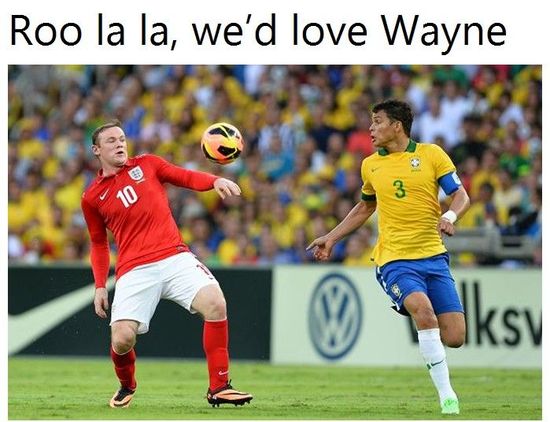 “我十分喜欢鲁尼,当我和他是对手的时候,他打破了我们的球门(英格兰2-2巴西的那场比赛)。我十分希望鲁尼能够转会来巴黎圣日耳曼。”在接受媒体的采访时席尔瓦一点都不掩饰对鲁尼的喜爱之情,“如果他真的能够和我成为队友的话,那我们球队的实力将得到明显的增强,我也十分期待着这一天。”