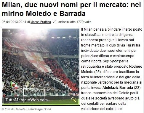 无缘德德之后,AC米兰又相中了一名巴西中卫。迪马尔齐奥透露,这名后卫的名字叫做罗德里格-莫莱多。1987年出生的他比德德大一岁,效力于巴西国际。莫莱多身体素质不错,但比德德要矮。在巴西队2-2战平智利队的友谊赛中,莫莱多入围了大名单。不过,莫莱多之所以能入围大名单,还是因为恩里克在俱乐部的赛事和国家队赛事撞车,莫莱多临时入替。后来俱乐部赛事改期,恩里克入围国家队,斯科拉里把莫莱多留在国家队。对阵智利一战,德德首发出场,恩里克替补上阵,莫莱多没有获得机会,他只是国家队的边缘人。