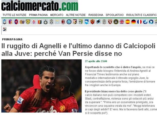 《足球市场》:阿涅利称去年夏天差点就能引进范佩西