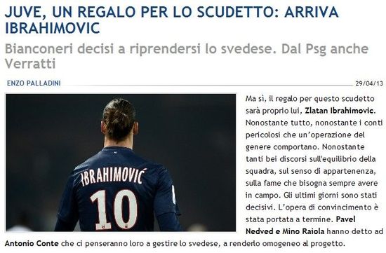 根据法国媒体的报道,巴黎主帅安切洛蒂几乎确定接手皇家马德里,而伊布也有可能随之前往西班牙首都。然而拉伊奥拉不这么想,荷兰籍经纪人与尤文高层关系紧密,视斑马军团为瑞典人首选落脚点。说服伊布降薪是交易最大关卡,双方近来频繁对话,据悉仅过去一周里就有至少3次正式或非正式会谈,在拉伊奥拉的劝说下,瑞典人已同意老东家的降薪要求。