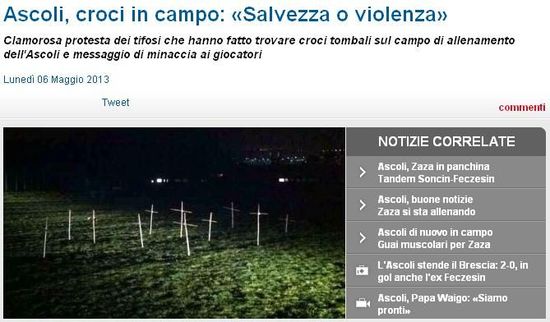阿斯科利的极端球迷组织“Ultras 1898”还在自己的网站上发布公告,称,“我们希望看到怒吼。阿斯科利是这座城市的象征,我们不能接受它降级,不能丢失荣誉。现在我们看不到任何自豪感,无论是俱乐部、球员、教练还是那些所谓的球迷。我们要看到战斗精神,必须有人负起责任。”本周末阿斯科利将在主场对阵特拉纳,媒体认为,如果那场比赛阿斯科利无法取胜的话,甚至有可能引发大规模的球迷骚乱。