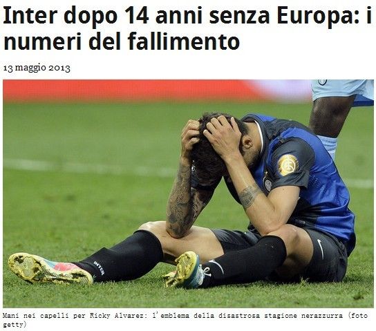 意甲前37轮,国米输掉15场,仅列积分榜第9位,14年首次无缘欧战。上次无缘欧战的1998-99赛季,国米排在意甲积分榜第八,尽显疯狂本性的老板莫拉蒂4次换帅;而过去65年间排名更差的1993-94赛季,国米仅得联赛第13名,但蓝黑军团好歹还有联盟杯冠军遮羞。
