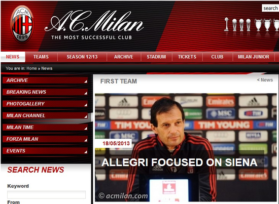 《米兰官网》:阿莱格里只关注米兰对阵锡耶纳的比赛