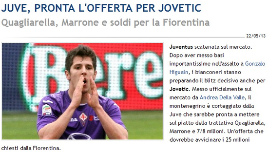 收购皇马射手伊瓜因的交易尚未有定论,但与此同时,尤文对佛罗伦萨头牌约维蒂奇的收购已经进行到最后阶段,斑马军团已经基本敲定最终的报价方案——700万欧元,外加两名本土球员夸利亚雷拉及马罗内。