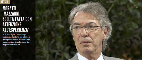 莫拉蒂说:“聘请马扎里是经过慎重思考后的决定,他拥有球队此时所需要的一切经验,他就是我们的选择,接下来让我们看看在转会市场会发生些什么,我们会征求新教练的意见,看看能够引进哪些球员,我们希望球队变得越来越好,并且从来都坚信这一点,马扎里是个勇敢的教练,我认为球队在他的率领下会焕然一新。”