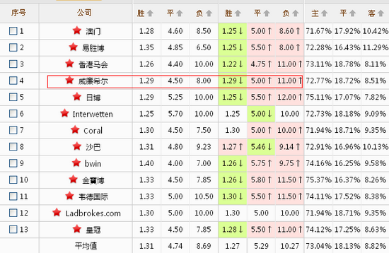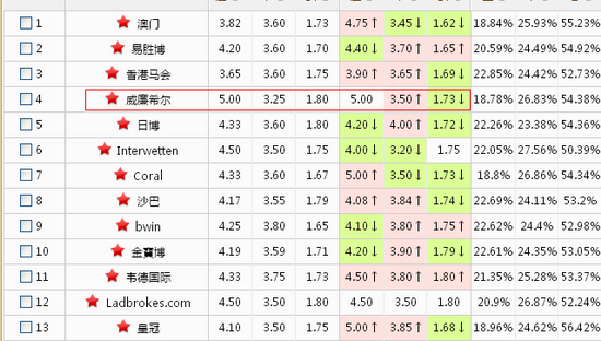 丹麦队在欧洲属于第二集团的佼佼者,阵中的中场核心埃里克森已经是年轻一代中最好的Playmaker之一,如今只等去豪门证明自己的能力。维克多·费舍尔也正在逐渐展露出自己的才华,阿格尔、雅库布森、凯尔等人的能力也有目共睹。亚美尼亚队则默默无闻,恐怕只有效力于顿涅茨克矿工队的核心姆希塔良还算有一定的名气。事实上像亚美尼亚这样无论在足球领域或是其他方面都鲜有亮点的国家最容易受到投注者的忽视。尽管是一场足球比赛,但是影响投注者心理的因素却有很多,包括国家的知名度、经济实力、军事实力、国际地位等等都会对投注者产生影响,继而对于球队的实力评估出现偏差。丹麦队近6战2胜2平2负状态不佳,主场更是1胜2平3负有些惨不忍睹。威廉希尔和立博1.28 4.50 8.00的赔率并无不妥,只是投注者在面对这种实力差距悬殊而弱队又几乎没有任何情报和题材的时候,容易产生惰性思维,不愿意对比赛进行更深入的分析。这样的冷门确实有些‘大冷无痕’的意味。